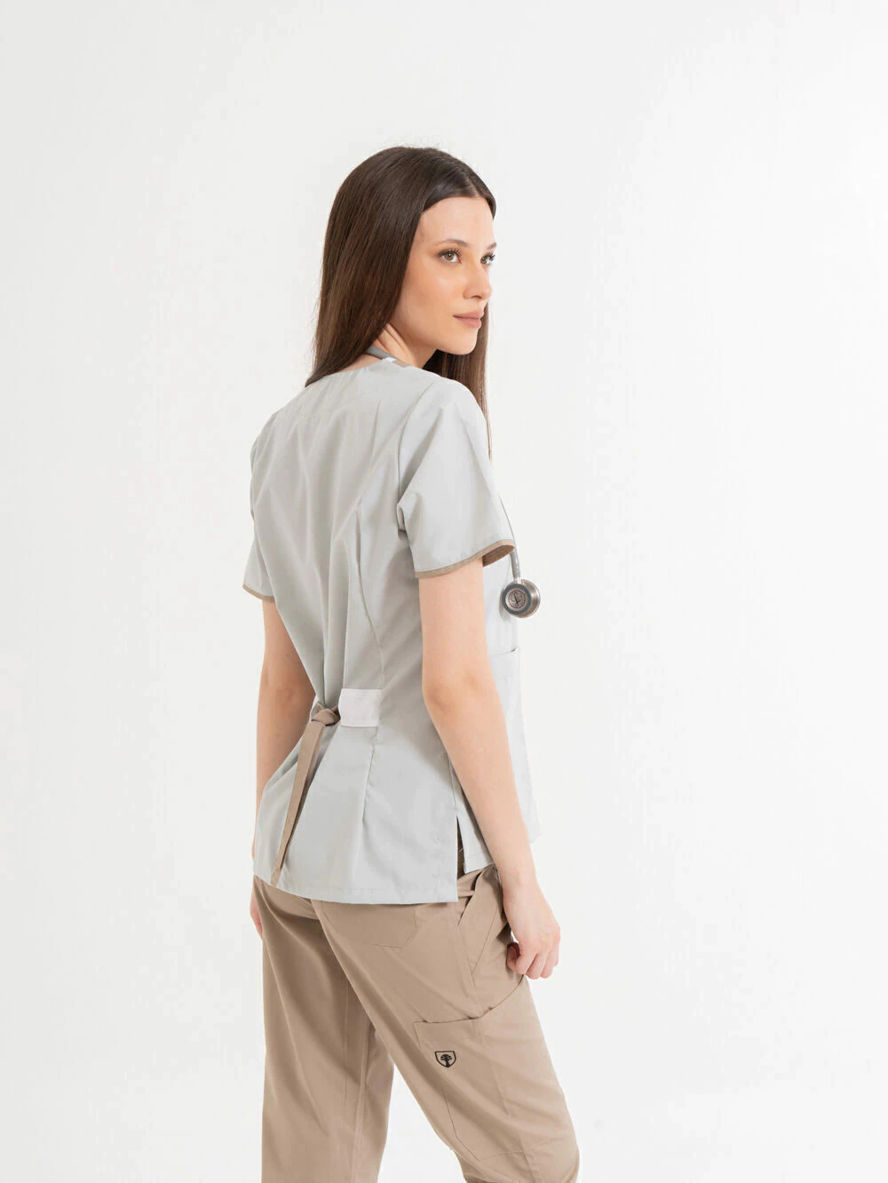 Cuello de tela de combinación en 2 colores contrastantes para combinar con diferentes colores de pantalones.